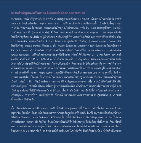 เป็็นต่้น ดิังนั้น “ดิิน” จ่งเป็็นทรััพยากรัธ์รัรัมชีาต่ิท่�สำค์ัญทางการัเกษต่รั เน่�องจากเป็็นป็ัจจัยหลักท่�จำเป็็น