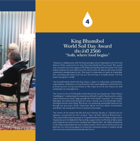 The King Bhumibol World Soil Day Award is given to individuals, communities,