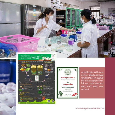 และได็้ม่การศึกษาวิิจ่ยอย่าง ต่อเน้�อง เพ้�อผลิตผลิตภู่ณฑ์์ จุลินที่ร่ย์ สารเร่ง พด็. ชนิด็ใหม่ หร้อ นวิ่ตกรรมจุลินที่ร่ย์ พด็. ในปี พ.ศ. 2545 ผลิตสารเร่ง พด็.2, พด็.3, พด็.5, พด็.6 และ พด็.7 72 พันธกิจัสำำาคัญขัองกรม่พัฒนาที�ดิน 73